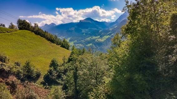 Der Weg zur Staumauer in der Fallenbachschlucht ist besonders bei hohen Sommertemperaturen eine kühle Abwechslung, da er durch ein Schatten spendendes Wäldchen zur Staumauer führt. Folgt man dem Weg weiter, kommt man nach Zand, Allmeindli, Hag und runter nach Betlis.