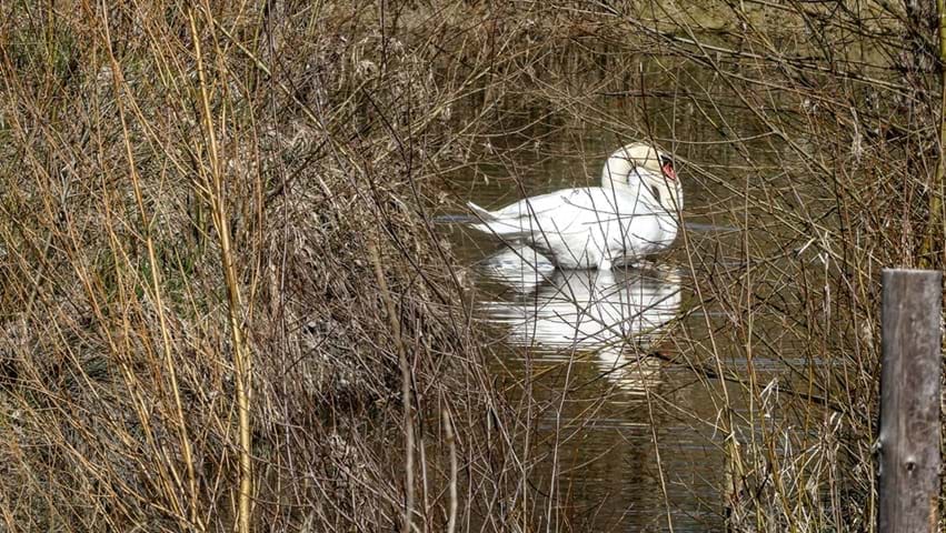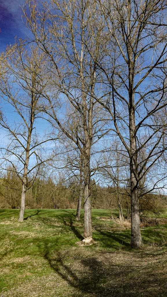 Mit etwas Glück können Sie im Auenschutzgebiet Biber, Rehe, Füchse und eine Vielzahl von Vögeln beobachten. An den Bäumen entlang des Dammes sind die Spuren des Bibers deutlich zu erkennen.