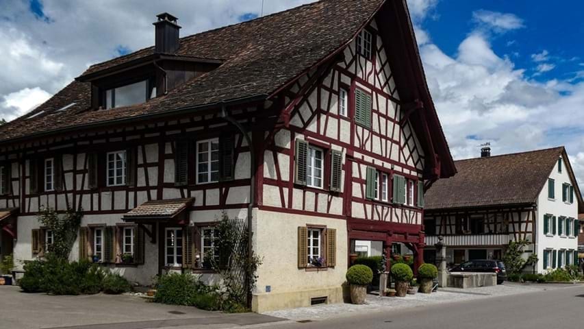 - Gasthof zum Hirschen, Oberstammheim: Ein prachtvoller Riegelbau aus dem Jahr 1684 mit Fachwerk und einem gemütlichen Ambiente.