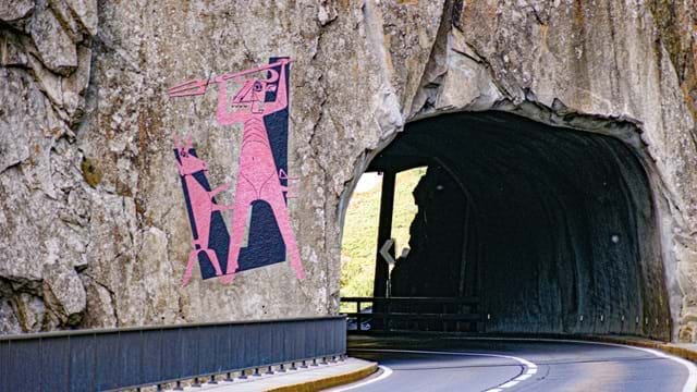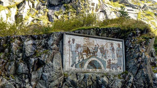 Über der Brücke prangt an der Felswand ein markantes Teufelsbild des Urner Malers Heinrich Danioth.