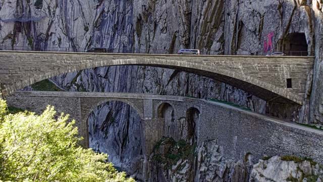 Die wilde Schöllenenschlucht war früher ein schwer zu überwindendes Hindernis auf der Route über den Gotthard in den Tessin.